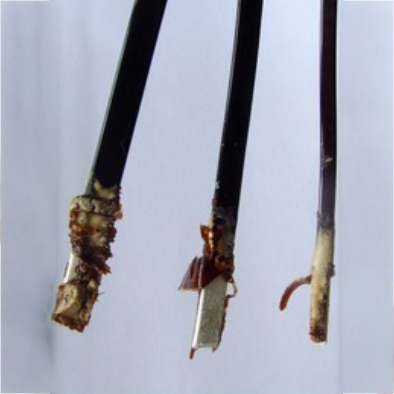 ■ 剥漆后根部整齐干净,焊锡光亮均匀,返工率极低